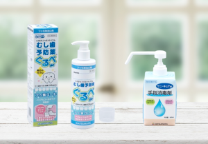 弊社オリジナル 【医薬部外品】「紙パック 手指消毒剤 サニーキュアBE」 「詰替え用 手指消毒剤 サニーキュアBIB 5L」を展示致します。